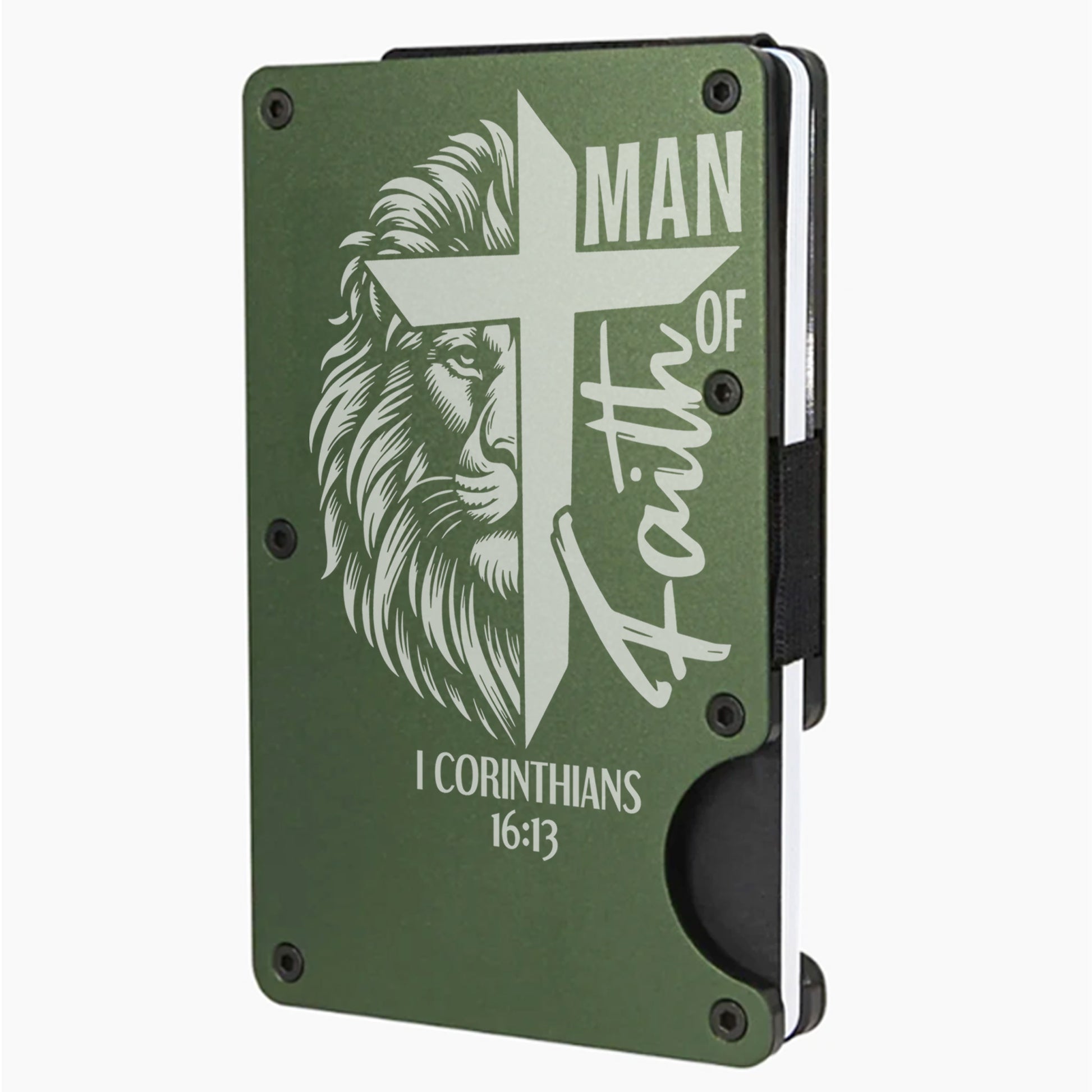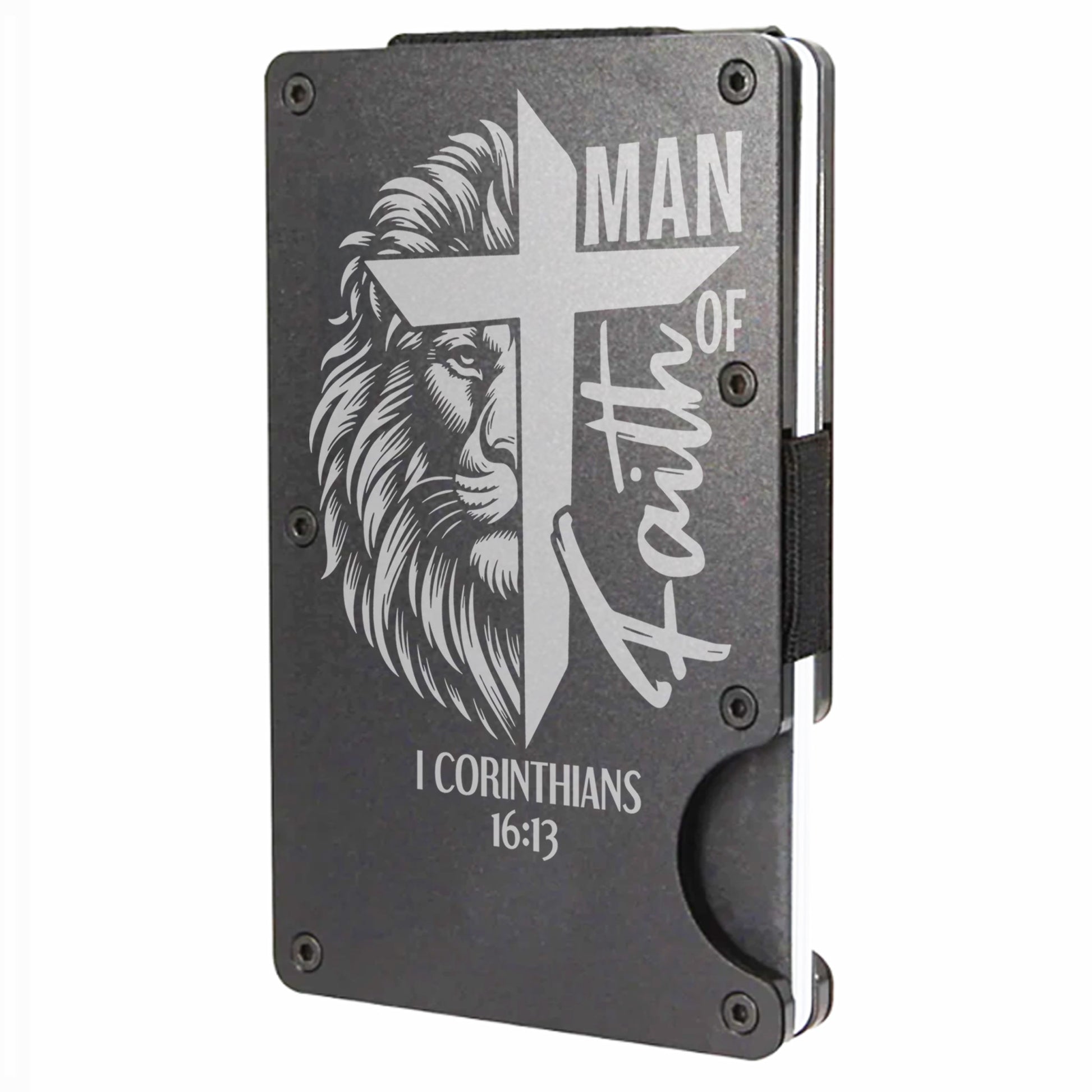 Man of Faith Slim Minimalist RFID Men's Engraved Personalized Wallet